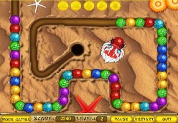 den Zuma Spielen üblich ist, mindestens drei gleichfarbige Kugeln